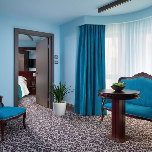 Si vous appréciez le confort et le style, les spacieuses suites de 43-44 m2 à Domina St. Pétersbourg seront votre meilleur choix. Leurs fenêtres donnent sur la cour intérieure ce qui vous garantit un sommeil rafraichissant et les rêves les plus doux.