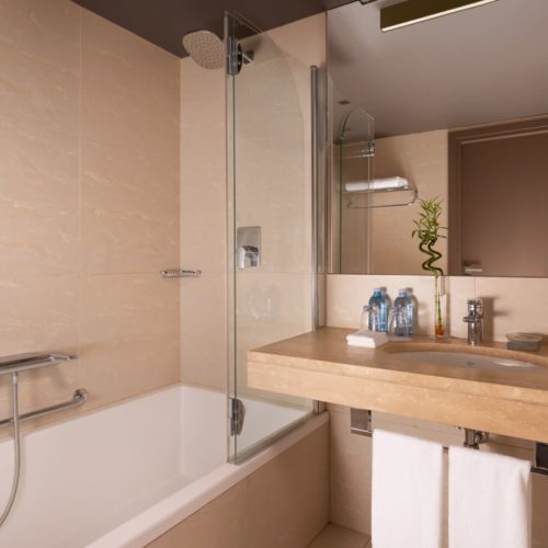 Les détails soigneusement pensés vous offrent un confort habituel et un vrai chez soi lors de votre séjour dans la Capitale du Nord. Les produits d’accueil de luxe Acqua di Parma sont complétés par du sel de bain et une éponge pour le corps.