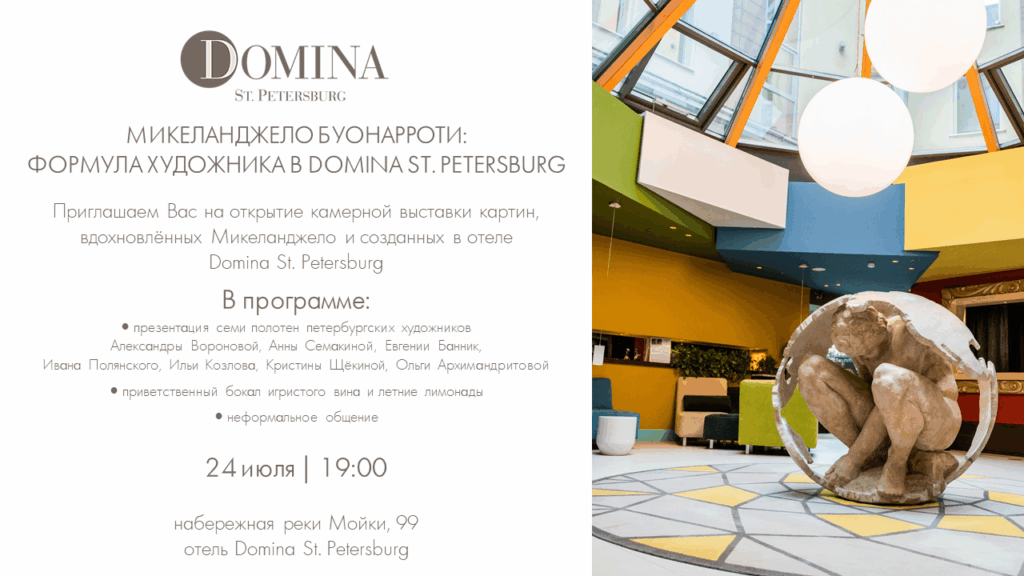 МИКЕЛАНДЖЕЛО БУОНАРРОТИ: ФОРМУЛА ХУДОЖНИКА В DOMINA ST. PETERSBURG