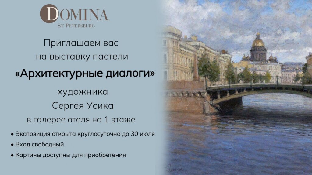 6 июня открываем выставку «Архитектурные диалоги» Сергея Усика в арт-галерее Domina St. Petersburg: творческий вечер откроет увлекательная лекция «Путешествие из Венеции в Петербург» итальянского архитектора Габриэле Валентинуцци