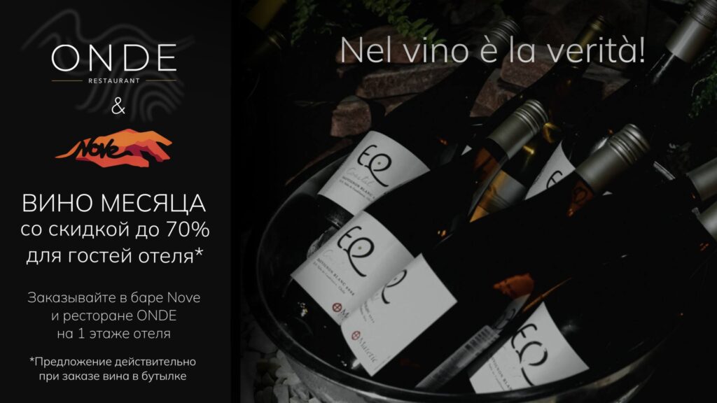 Будь то нуарный бар Nove или средиземноморский ресторан ONDE, винное предложение действует везде до конца апреля.